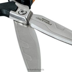 изпитайте усъвършенствана механика и ергономичност с ново поколение режещи инструменти, които осигуряват повече здравина, комфорт и контрол. Ножиците powerarc(tm) се отличават с интелигентно извити остриета, които променят ъгъла между остриетата, за да ви дадат над 30% повече мощност, особено по време на най-трудната част от рязането. издръжливите ковани остриета от неръждаема стомана предотвратяват отделянето на острието. назъбен ръб, удължен край и болтова връзка подобряват контрола и издръжливостта. ергономична дръжка с мека ръкохватка и стратегическа текстура подобрява комфорта и разполага с по-големи примки за големи ръце с ръкавици.
