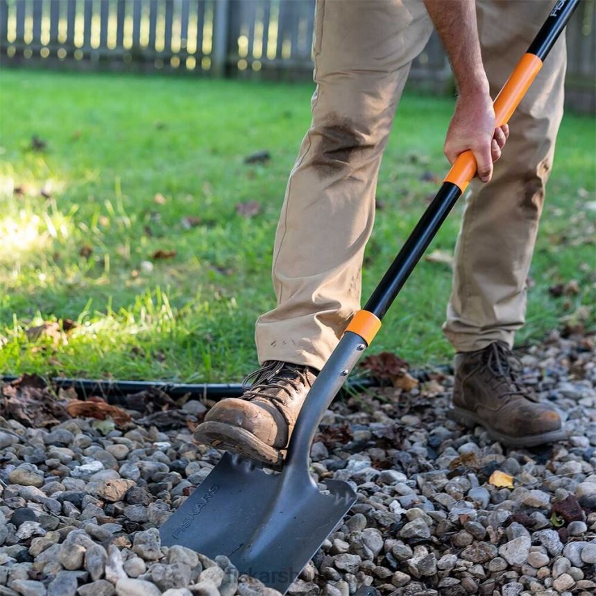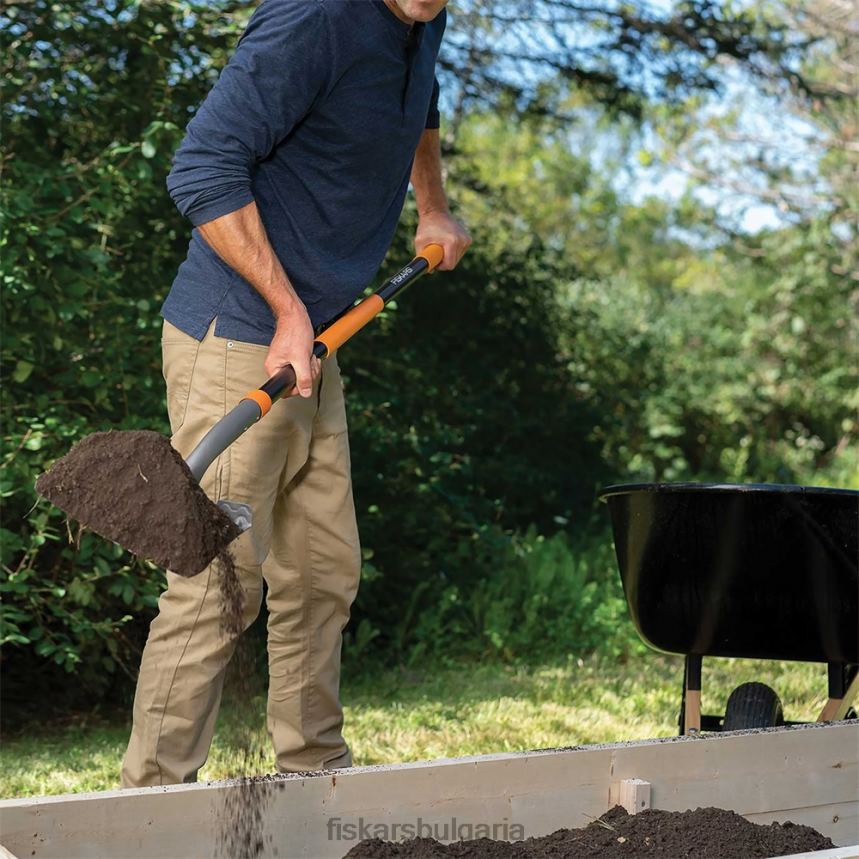 - Тежката лопата fiskars & трансферна лопата разполага с тежка стоманена глава, идеална за преместване и разпръскване на мулч, чакъл и други градински материали