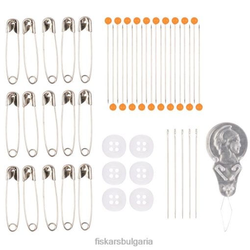 страхотен комплект за начинаещи или изчерпателен комплект за шиене при спешни случаи, fiskarsкомплект за шиене (62 бр.) съдържа всички основни понятия, необходими за поправка на почти всяка злополука с дрехите. Извитите детайлни ножици fiskars (4 инча) разполагат с дълготрайни остриета от неръждаема стомана, които са извити, за да режат наравно в тесни пространства. всички спретнато съхранявани в твърда, полупрозрачна пластмасова кутия, този комплект включва също 4 макари за конци (25 ярда всяка), 5 фута измервателна лента, 6 лентови ленти за отлепване и залепване, 5 ръчни игли, устройство за вдяване на игли, 2 тъкани моливи, 20 прави игли, 15 безопасни игли и 6 копчета.