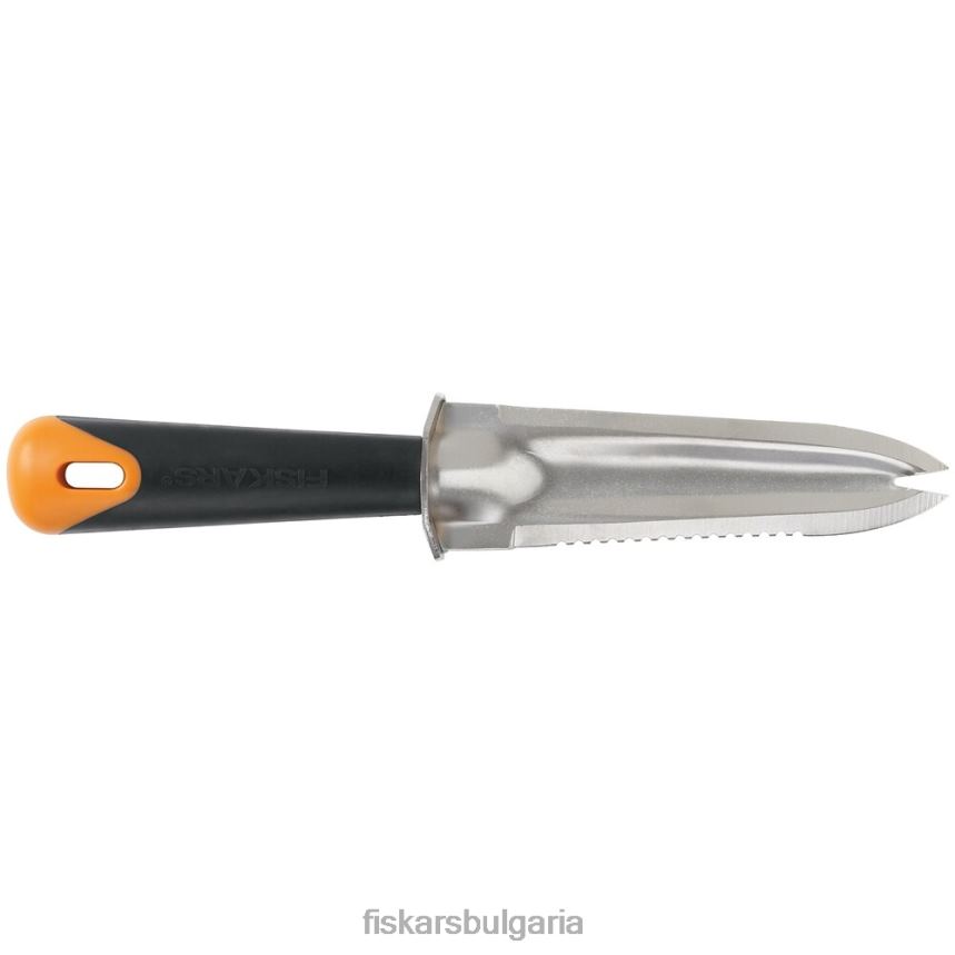 fiskars многофункционален нож за засаждане с голяма ръкохватка разполага със специална многофункционална стоманена глава с покритие, която включва заточен ръб на острието за рязане на трева или разцепване на разсад, назъбено острие ръб за разбиване на по-дебели израстъци и раздвоен връх за премахване на корени. издръжливата, устойчива на ръжда глава няма да се счупи, докато голямата, ергономична дръжка с мека ръкохватка предлага отличен комфорт и контрол. освен това дръжката включва отвор за закачане за удобно съхранение.